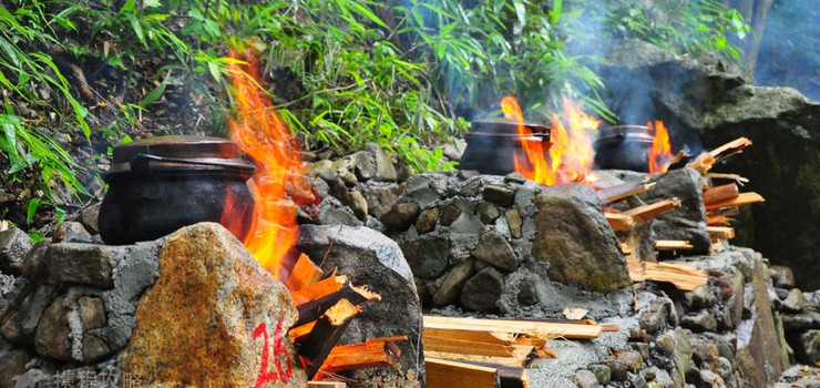 在风景秀丽,环境优美的小溪边,动手捡柴,将传统的铜锅架于柴火上,用粳米取用咸肉、笋干、青豆等配料焖煮出来的米饭,醇香浓郁可口,品尝到真正的健康铜锅饭,体验野趣和野外美味。