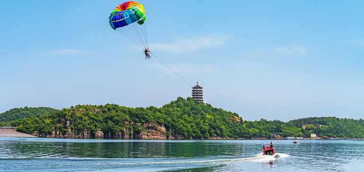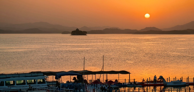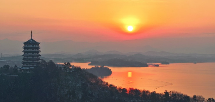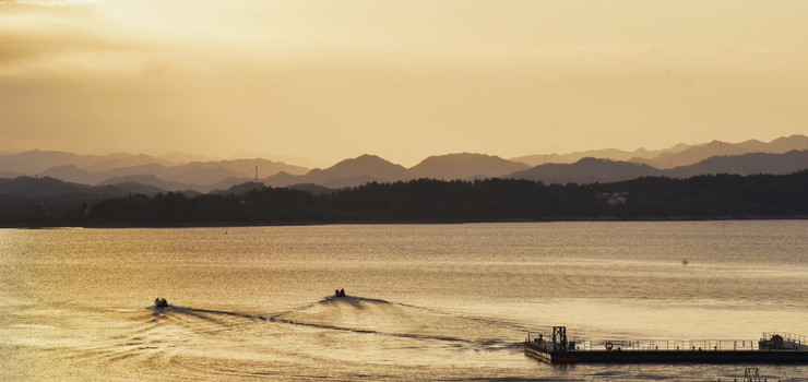 和三五好友泛一叶扁舟,在日落时分畅游万佛湖,看水面和天幕连成一片,落霞与孤鹜齐飞,秋水共长天一色,人世间的诗意和美好,在万佛湖的傍晚静静感受。