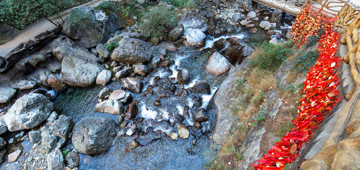 到石门关景区,体验玻璃栈道是绝不可错过的;在古石板羊肠小道的一端尽头,修建的绝壁玻璃栈道,悬挂于绝壁中间,行走于栈道之上,你可以清楚的看到,脚下就是万丈深渊,令人魂飞胆散;你有胆量去挑战它,征服它吗?