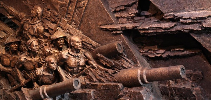 大沽口炮台遗址博物馆建筑外形呈不规则的放射形,犹如炮弹爆炸的形状,取义于“东西方文化的碰撞、民族精神的迸发”。
