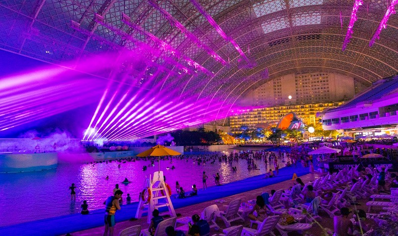 在环融环球中心海洋乐园造浪区,8500平方米造浪池、300米长海岸线、4500平方米高清LED荧幕,完美演绎出海天一色的壮阔景象。畅游咫尺之遥的环球购物中心、IMAX巨幕影院、冰上运动中心、顶 级SPA,让所有游客随时能感受海滨度假的浪漫情调与独特魅力。