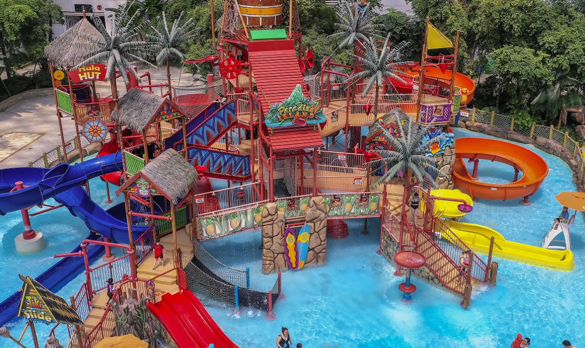 游乐区共有13个游乐项目,18条水上滑道,漂流河、大喇叭、合家欢、水寨、大回环以及西南地区独有的滑板冲浪等大型水上游乐设备,通过极具创意的巧妙组合与空间布局,满足不同年龄的游客需求。汤池区共设有11个不同温度的汤池,多功能池、儿童池、异域风情的土耳其浴供您体验。