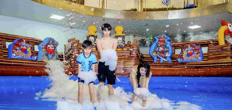总面积达3800平方米,从涓涓细浪到拍岸巨浪,9种海浪持续造浪30分钟,最高造浪可达1.2米,犹如在大海中徜徉。两岸的水枪、水泡也将给您带来意外惊喜,来吧,准备好好享受一段惬意而惊险的海上旅程吧。