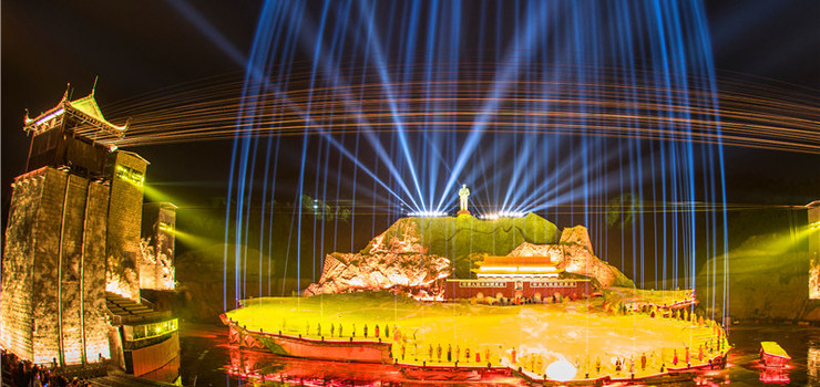 大型山水实景演出《中国出了个毛泽东》,是以毛泽东一生为中国革命立下的丰功伟绩为线索。以呈现一个历史真实与艺术真实结合的舞台环境,提升全剧艺术感染力,带给观众更真实的观感。