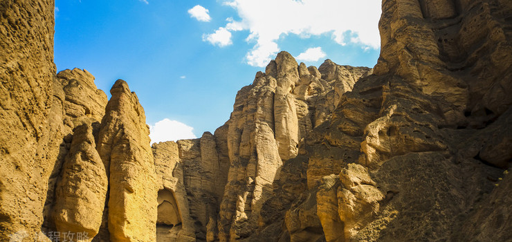 狭谷,如蛇明灭,皆以沟命名,从东南至西北,共有八沟之多。正在开发的饮马沟大峡谷内有雄狮当关、猎鹰回首、大象吸水、千帆进发、西天取经、月下情侣、屈原问天等众多景点,形神兼备,栩栩如生。黄河石林生成于距今四百万年前的第三纪末和第四纪初的地质时代。由于燕山运动、地壳上升、河床下切、加之风化、雨蚀、重力坍塌形成了以黄褐色河湖相砂砾岩为主的石林地貌奇观,景区内陡崖凌空,造型千姿百态,峰回路转,景象步移万千。石柱、石笋一般在80--200米之间。