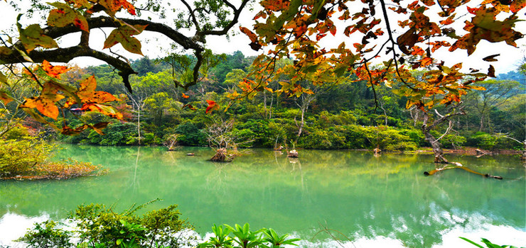 每年秋季无数的游客都会涌到北京香山去看枫叶,须不知桂林漓江逍遥湖景区是枫树的世界。每逢秋天,整个景区便会在七彩枫叶的点缀下缤纷闪耀。再加上逍遥湖上波光粼粼,天空云淡风轻,正所谓的秋水共长天一色,使人仿佛置身于诗情画意的山水图画之中。喜欢摄影的朋友不可错过的圣地。