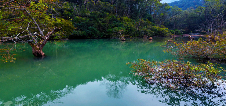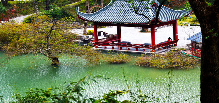 只见湖面波光粼粼、疏影摇曳生姿,湖岸花香袭人,柳丝拂浪。相传逍遥湖始于清朝修筑的堰坝,拦截溪水而形成山林小湖。湖畔古树密林环绕,湖中几处水柳点缀,。春夏一片碧绿,生机盎然;秋天红黄相间,色彩斑斓;冬季也不落叶,宁静安详。此处为景区的核心景点,其大特色便是山间成湖,林木环抱。