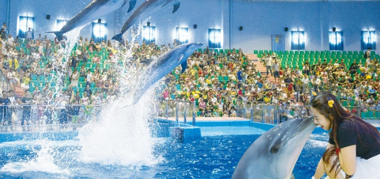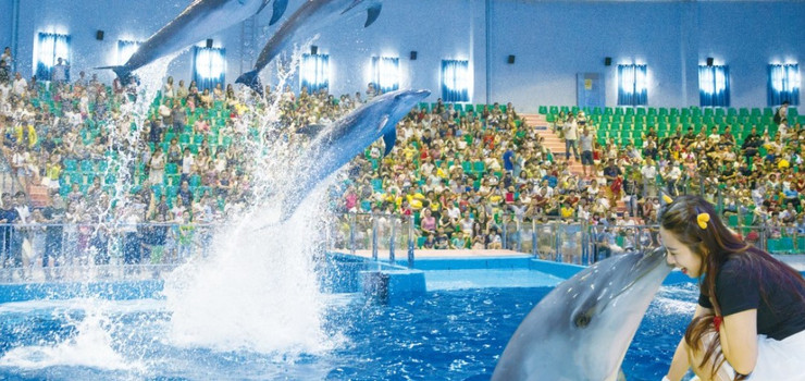 在容纳1500位观众的剧场里,海豚、海狮宝贝在碧波荡漾的动物表演池中调皮的嬉戏玩耍,时而跃出水面,时而徜徉水里,聪慧灵动的为游客展示它们的绝活,上演精彩的表演。在这您将与海洋精灵们共度美好的一天。