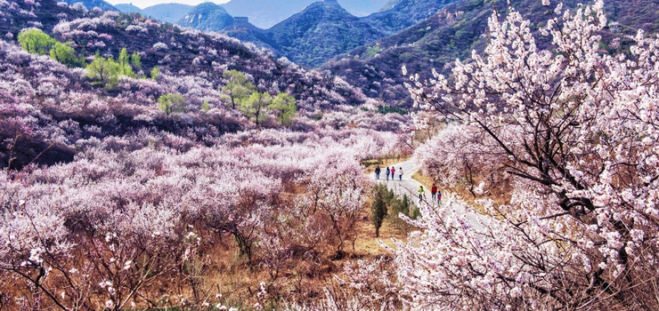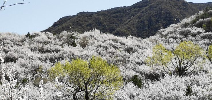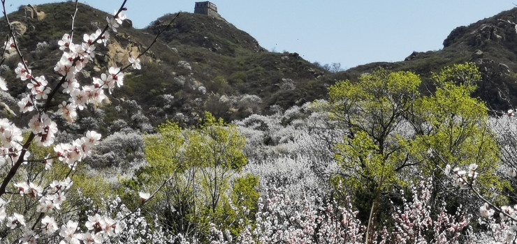 延伸于群峦峻岭之中,视野所及,依山势向两侧展开的长城雄峙危崖,陡壁悬崖上古人所书的"天险"二字,在万物复兴的时节,这里也是兴荣一片。