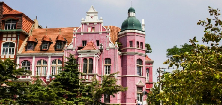 与青岛钓鱼台一街之隔的是一栋日式建筑——元帅楼,楼内设有四个房间,其中一个日式套间的墙壁上镶挂着一块樱花木,据日本人考证,该樱花木有上千年的树龄,十分罕见。元帅楼是1940年由日本人所建,由于共和国的十大元帅中有六位曾来过这里,故得名元帅楼。