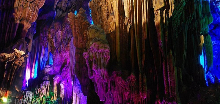 只见一座白色石笋,如一座盛开的荷花,花中坐着慈目低垂的“观音”菩萨。观音旁边那座石笋象是抱着孩子的送子娘娘。周围无数的小乳石就象一群群前来朝拜的仙人。其中一尊如太白金星在拱手相迎。所有这些形象生动地构成了一个“紫竹松林”的境界。在观音殿对面是蓬莱仙岛的奇异景观,蓬莱是传说中的海上仙山,它奇特之处在于海上出现的海市蜃楼景象。这里的景色海天茫茫,空照澄碧,远方的海市隐约可见,那红色呈拱状的地方象是一座城门,里面各式建筑星罗棋布,景象万千。