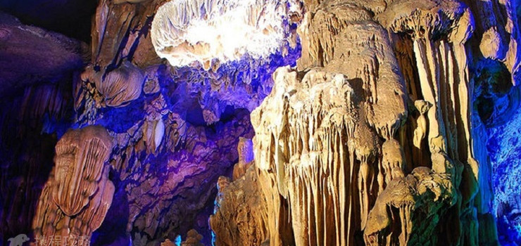古佛洞天属大型石灰岩溶洞,洞内上下重叠三层,高处达30米,常年气温保持在19~20℃。各式石笋、石花、石柱、石幔,或插其中,或悬其上,色彩斑谰,景象纷呈,蔚为奇观。妙处在于许多钟乳石,其状如仙人佛众,形神各异,一经点化,呼之欲出。