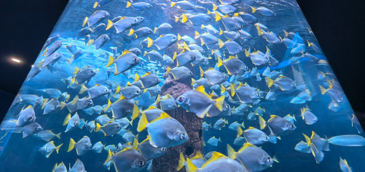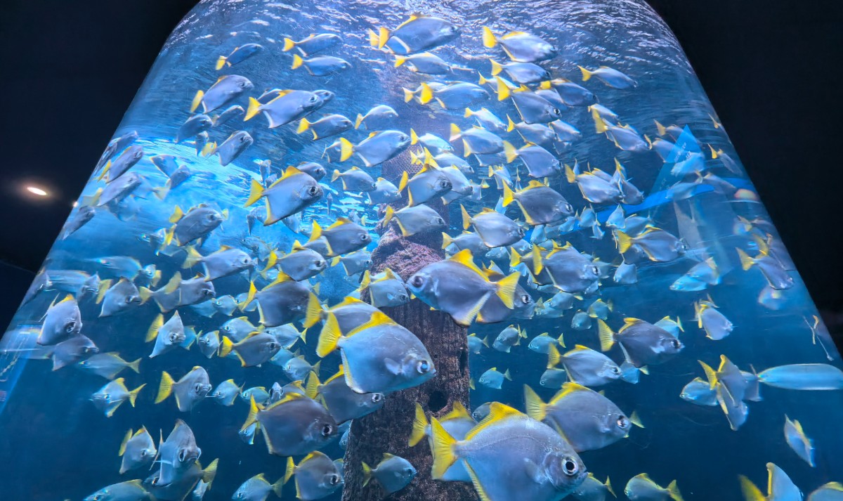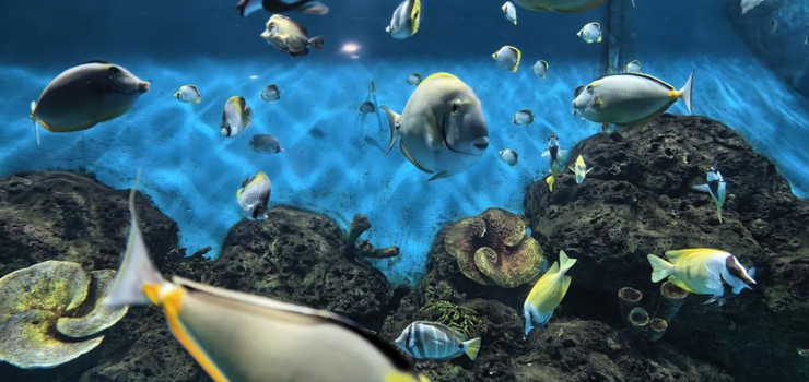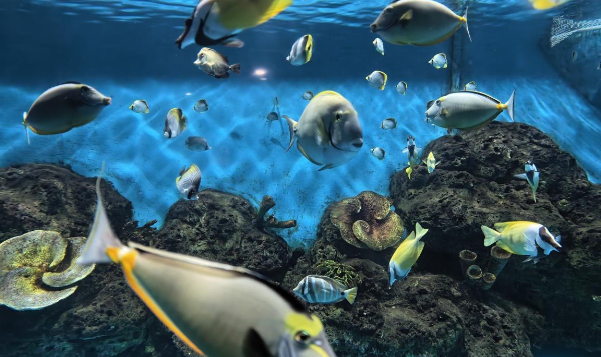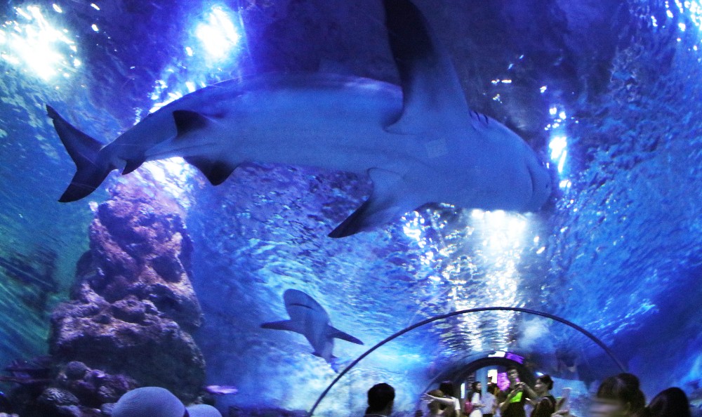 馆内拥有长达近百米的海底隧道,走进隧道仿佛置身于蓝色海洋,自由穿梭于各种鱼群之间,伴随着悠扬的音乐,透过拱型的亚克力,可以看到色彩斑斓的鱼儿欢快地在珊瑚丛中游来游去,似乎伸手可及;另外还可以看到英武彪悍的大鲨鱼“漫步”于隧道中,让您尽览迷人的水下世界。