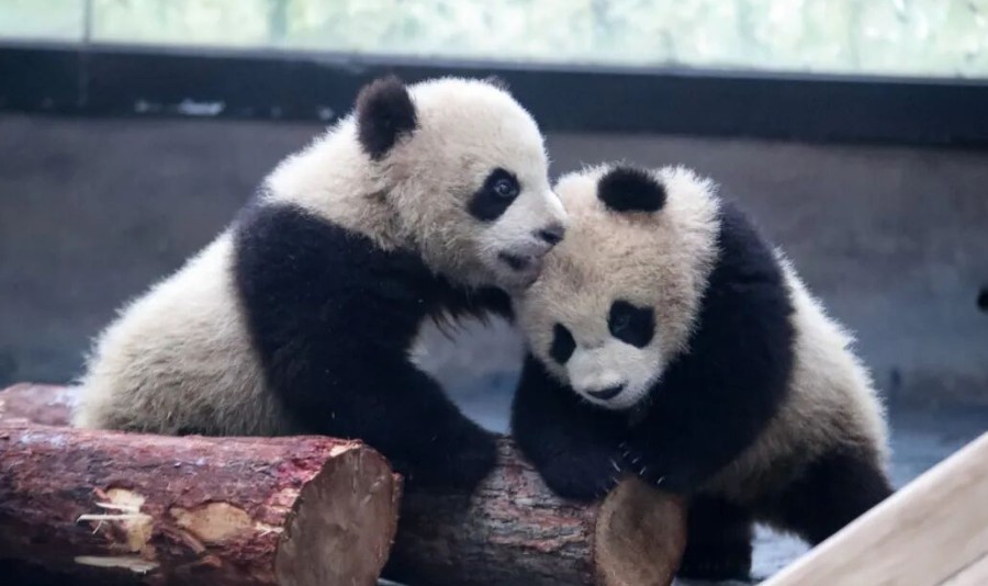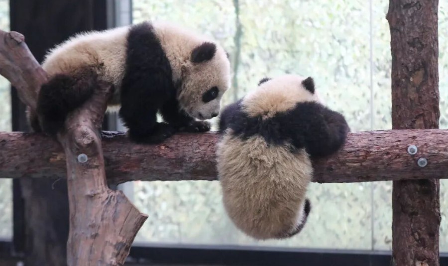 转眼间,大熊猫芊然、芊逸迎来成长路上一个小小的里程碑,两小只已满半岁啦~我们和它们一起见证了许多闪闪发光的成长时刻。通常来说,半岁左右的大熊猫幼崽应当能自由行走,并开始学习进食竹叶。而我们的芊然、芊逸,早已不满足于达标。运动能力满点,不仅行走稳健,还能灵活上下栖架、爬楼梯、过独木桥,甚至开发出了逆爬滑滑梯的技能!进食进程开启,**常看见它们抱着竹叶认真啃咬,保育员更在它们的便便中发现了竹叶成分。*令人欣慰的是,在**的称重中,姐弟俩的体重都突破了10公斤大关!圆滚滚的身材,是保育员和芊金妈妈日夜照顾的**证明。