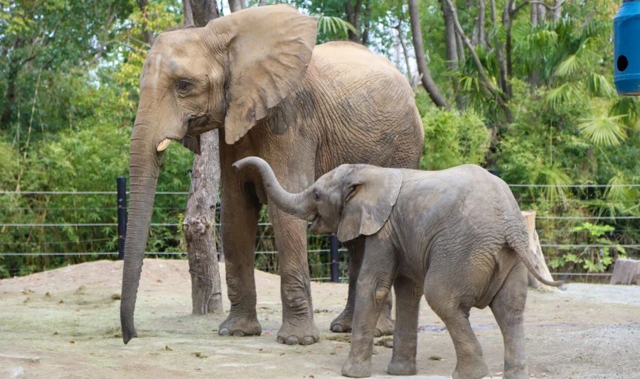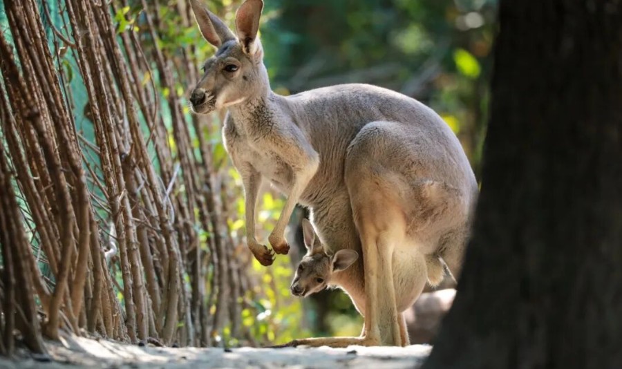 非洲象吉祥和“小小露”喜欢在妈妈身边调皮捣蛋,时常甩动长鼻子、扇动蒲扇般的大耳朵,偶尔在草料堆里翻滚捣乱。毛茸茸的袋鼠宝宝藏在妈妈的育儿袋里,只露出小小的脑袋,好奇地打量着这个春暖花开的世界。广场上,红猩猩核桃在绳索间欢腾跳跃、穿梭自如,像只活泼的“窜天猴”,时不时还会和饲养员互动打闹,调皮又可爱。黑猩猩皮皮是出了名的“皮大王”,活泼好动,连吃饭时也不安分,挑食却格外喜欢喝奶,抱着奶瓶的模样软萌十足。