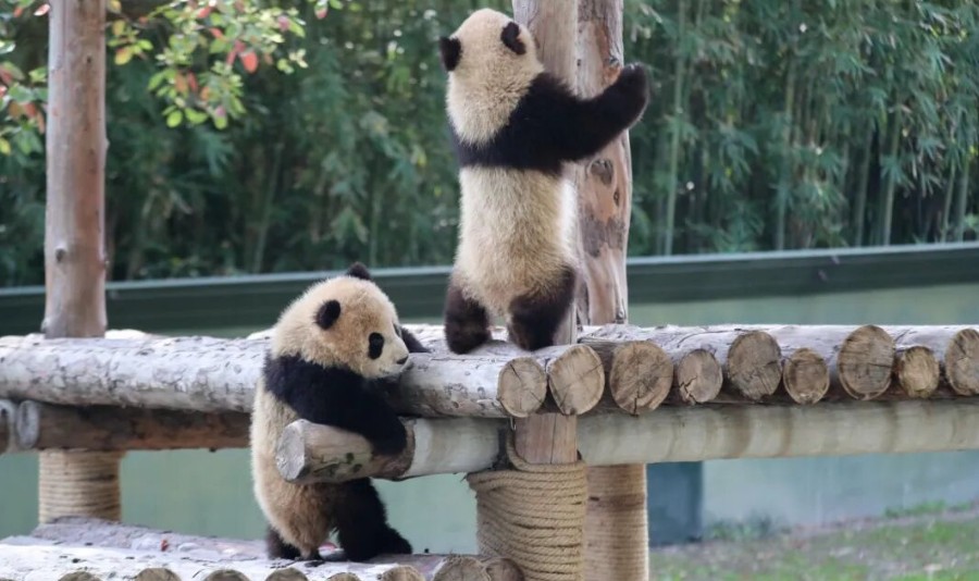 早晨的**缕阳光洒进上海野生动物园的大熊猫展区,我们的“高能量”姐弟——芊然和芊逸,已经按捺不住想要出门探索的小心思了。短暂告别芊金妈妈的怀抱,两小只立刻切换到“撒欢”状态,迫不及待地探索这个充满新鲜感的世界。栖架是它们的爱!姐弟俩你追我赶,灵活地在架子上穿梭、翻滚,小短腿蹬得飞快,时不时还来个“倒挂金钩”和“脸刹”下楼。柔软的草坪是它们的“游乐场”,一会儿打个滚,一会儿嗅嗅香气,对周围的一切都充满好奇。保育员精心准备的各式玩具,每一件都要用爪子拍一拍、用嘴巴啃一啃……而此时的芊金妈妈在干什么呢?在*初几天,每当两小只被带到外展区自由活动,芊金就会进入展厅休息、进食。可即便嘴里嚼着竹子,她的耳朵和鼻子也仿佛仍在值班——时不时停下来听一听动静、嗅一嗅空气,偶尔还会发出低低的呼唤,明显是在留意孩子们的声音与气息。那份不动声色的牵挂,大概就是妈妈本能的爱吧。不过很快,聪明的芊金就发现:两小只只是暂时在外场安全地玩耍,而自己,也终于有了一段可以完全放松、专心干饭的自由时光。于是近期的她,在独自进入展厅后,越来越从容淡定——选喜爱的竹子,挑个舒服的姿势,慢条斯理、大口享用,神情惬意得很。那副娃不