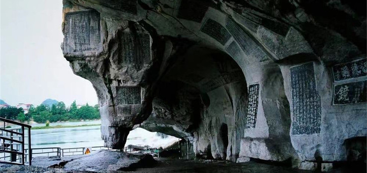还珠洞,洞内玲珑剔透,洞壁有100多种石刻,其中宋代大书画家米芾的题名、自画像和诗人范成大的题诗堪称珍品。有关还珠洞还有一个古代传说,相传有一位渔人进入此洞,见到在一条形状如狗,正在睡觉的动物面前,有颗莹光四射的宝珠,他取珠而归。官府知道后,命他归还宝珠,渔人只得返洞还珠。于是,后人便称此洞为还珠洞。