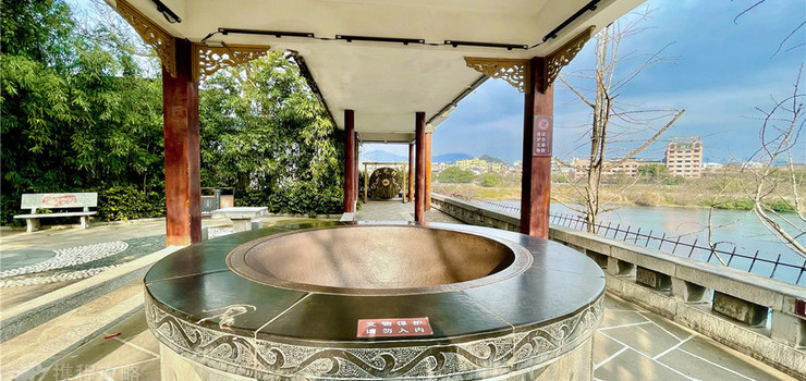 伏波回廊在伏波山第2级平台上,为“凵”形游廊建筑,伏波山前的土坡,形成两级平台,为使二者融为有机的整体,建造了这组回廊。在这级平台上,沿东南边缘建筑游廊,与平台北边的挡土墙自然形成一个院落,院内种植花木。廊前置亭,亭内存放古代“千人锅”。顺游廊拾级而登,达第3级平台,平台与茶室和庭院相衔。回廊曲折有致,步移景换,妙趣横生。