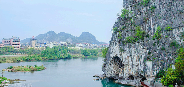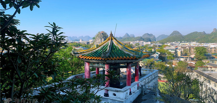 伏波山位于桂林城北的漓江之滨,是一座依水傍水的孤峰,汉代时伏波将军马援南征曾经过此地,故得名。唐时山上曾建有伏波将军庙。现有癸水亭、听涛阁、半山亭、还珠洞、米芾自画像、千佛岩等名胜,还有一口重1000余公斤的“千人锅”和重2700多公斤的大钟。还珠洞内有一块自洞顶垂悬而下的巨石,被称为试剑石,距地面仅寸许,戛然而断,相传是伏波将军试剑所致。