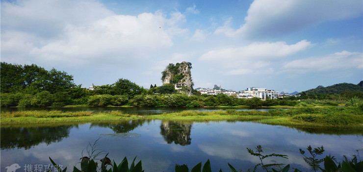 这座山孤峰挺秀,一半插入江潭,另一半则枕于陆地。每年春夏,江水暴涨,山麓遏阻急浪狂澜,使江水倒转回旋,有降伏波涛之力。伏波山景致优美,岩洞奇特。山的东面是临江回廊、伏波茶室和依崖而建的听涛阁,西面有登山石阶,可达半山亭和山顶,登高眺望,可看到桂林清秀如画的水光山色,因而有“伏波胜景”之美称。
