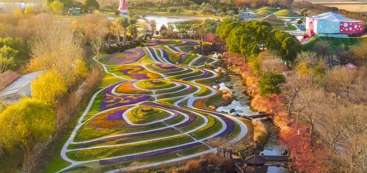 云雾与彩霞呼应,线条与色块交融,万紫千红的一片花海层层叠叠、烂漫似锦……这就是中国大自然梯田的原汁原味遇到花海的壮观绚丽所形成的令人震撼的立体美景。置身其间,从底层到高处的满眼瑰丽,连片的波浪式花海规模壮观、色彩层次分明,赏心悦目、美不胜收。