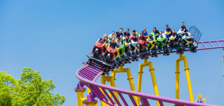 当摩托车遇上过山车,就是双倍的刺激体验,高空俯冲,近110km/h的时速,带给你自由飞翔的美妙感受。