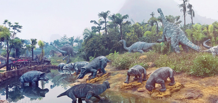 恐龙谷内分布上千头形象逼真的机械内核恐龙,给您以较直观的方式了解恐龙不同的习性,观看恐龙在丛林中嚎叫、捕食与生活,融入恐龙的生活环境。通过恐龙栖息地、恐龙岛、三叠纪、侏罗纪、白垩纪等不同区域内容对恐龙文化进行演绎展示,更有被恐龙摧毁的实验室——“恐龙废墟”,展示它们曾经在此战斗的痕迹。进入恐龙谷,让您与恐龙亲密互动,亲手揭开恐龙神秘的面纱,丰富的植被环绕,形态各异的恐龙聚集于此,为您重现一个史前恐龙国度。