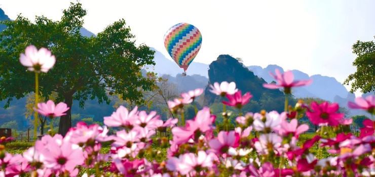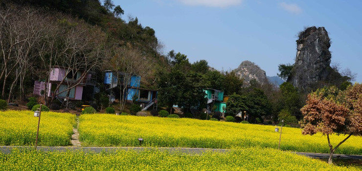 峰林晓镇国际生态农业度假区位于英德市的西南部60公里的九龙镇,地处美丽的英西峰林走廊景区内,这里山清水秀、风景如画,有万亩峰林,上千亩花海。景区内石山奇峰林立、溶洞奇特,形成了独特的生态环境,素有“飞借桂林山,漓江换明迳,游廊迎奇景,簪峰镇九龙”的美称。