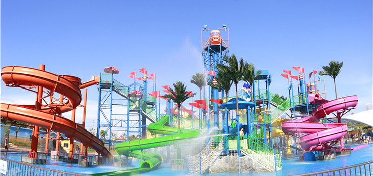 在色彩斑斓的飞龙迷环里直冲入底惊险又刺激,风暴之神的天坑旋涡是勇敢冒险家的乐园,冲天回旋的弯道中,化身人猿泰山体验天空翻越的快感,假如还不够刺激,惊转直下、花样滑坡、绿野迷踪里多角度的花样滑梯足以让你的每一个细胞都颤抖尖叫;不必担心体力补充,星月浅潭是孩子们的休闲戏水天堂,全家还可以参与家庭漂流,在欢笑中完成漂流的冒险旅程。