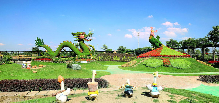这里是民族色彩较为浓郁的“龙凤花谷”,中国人都喜欢将龙和凤寓意幸福祥和。“龙凤呈祥”也就由此而来。在龙凤脚下,栽种着四季不同的花儿在这里绽放,偶尔也能看见彩蝶和蜜蜂在花间穿梭往来,充满了一种自由奔放的勃勃生机!而在充满荷兰风情的风车之下,白雪公主与王子的爱情故事正在这里得到延伸;王子为准备迎娶白雪公主准备好了花车。这里充满了童话的色彩,大人和小朋友都非常喜欢,是园区打卡拍照的。