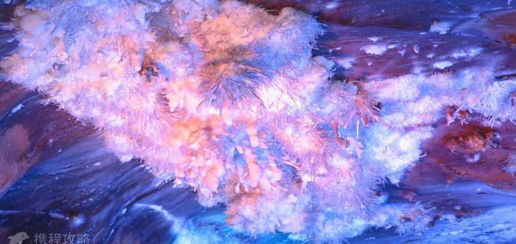 而奇特的是洞内岩壁上长出的簇簇石花,石花晶莹洁白,剔透玲珑,如银星闪烁熠熠生辉。经研究初步认为花卉状组合构成,在特定的物化条件下形成的,开始形成时间约为35万年前,至今仍在缓慢生长,见气成石,变幻无穷,生长不为重力所约。