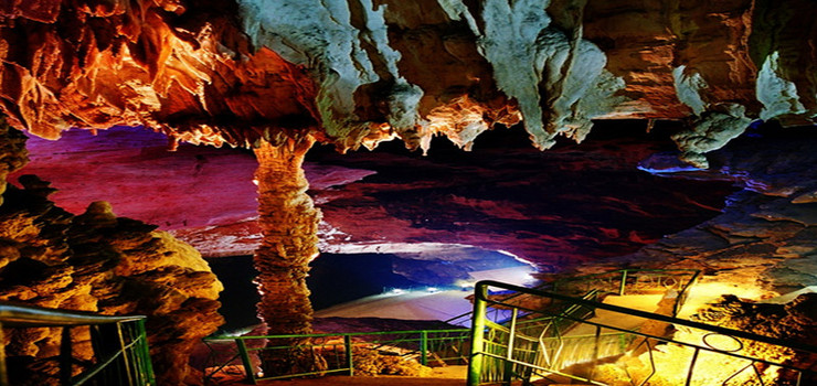 夜郎洞是世界上喀斯特地貌集中的溶洞群景区,也是一个水旱相结合的溶洞。景区内有神奇壮观的夜郎洞、石花洞、蜂子岩洞、响水洞等大大小小的溶洞组成的溶洞群,以及天坑、燕峰斜崖等独特的喀斯特地貌,胜景云集,水旱溶洞景色各异,是喀斯特地貌中一个特殊的溶洞群景区。