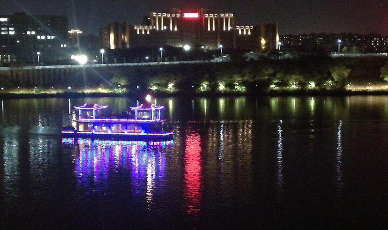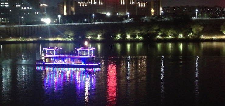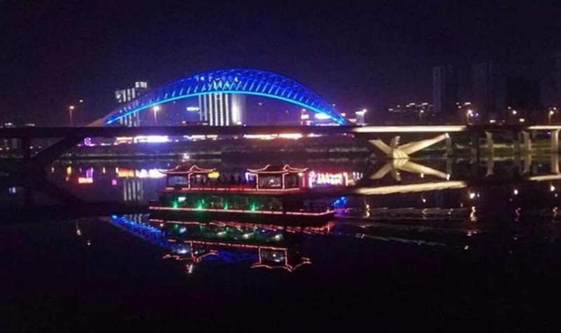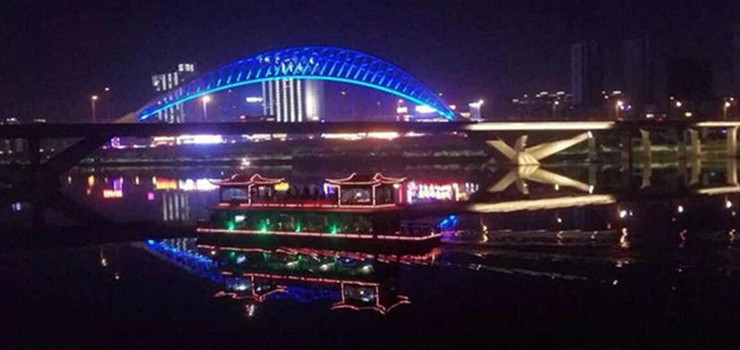 章江玉虹号画舫游船运营航线从新南河码头前往翠浪塔后经飞龙大桥、南河大桥返回新南河码头,航行时长1小时。