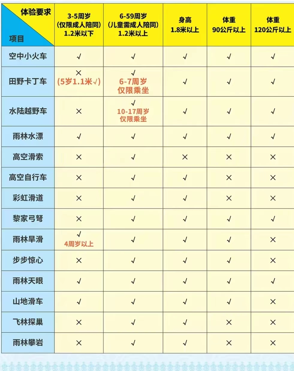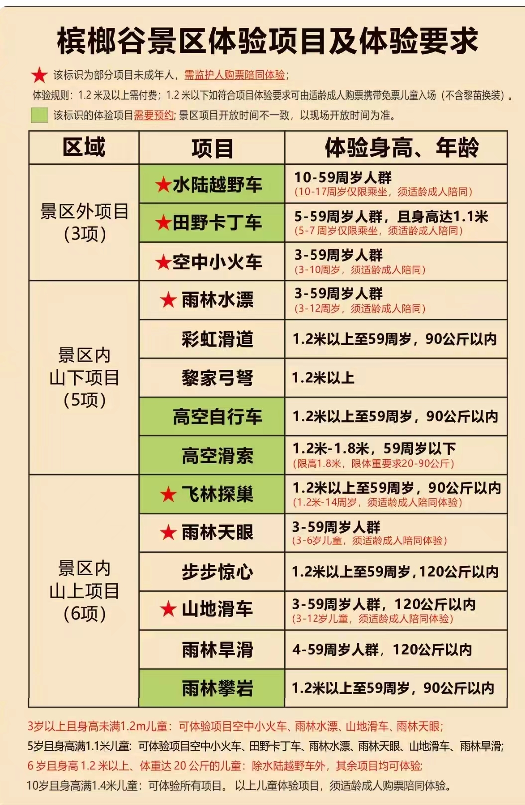儿童:1.2米(不含)-1.4米(含)之间、18周岁(含)以下未成年人购门票享受半 票优惠,其他服务项目价格不变;