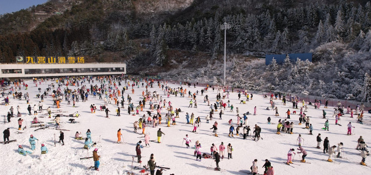 九宫山滑雪场雪粘度大,雪质好,适合开展大众滑雪和竞技滑雪。通过人工造雪和天然雪相结合的方式,提升滑雪质量。目前初级、中级雪道各一条,练习道一条。