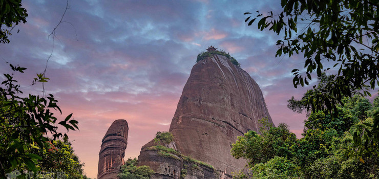丹霞山风景区位于中国广东韶关市东北郊,丹霞山风景区的地貌由六百八十多座顶平、身陡、麓缓的红色砂砾岩石构成,以赤壁丹崖为特色,称为丹霞地貌,丹霞山区是一个大型内陆盆地,受喜马拉雅山运动影响,四周山地强烈隆起,盆地内接受大量碎屑沉积,形成了巨厚的红色地层,属于红层地貌。山上红色砂岩经长期风化剥离和流水侵蚀,形成孤立的山峰和陡峭的奇岩怪石,巨厚红色砂、砾岩沿垂直节理发育。