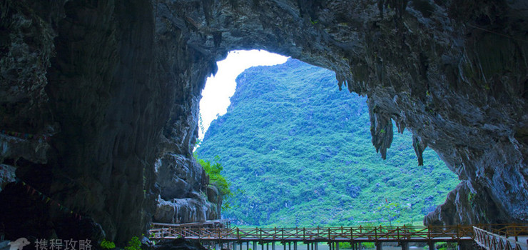 洞长800多米,高达50多米,宽约30多米,游程近3000米。有一小河穿岩腹而过,河水清澈见底。