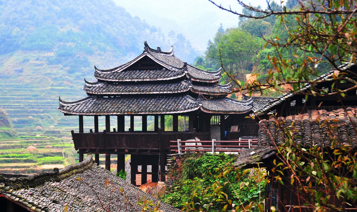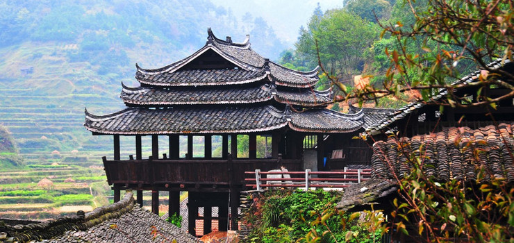 芋头古侗寨民居以“杆栏式”吊脚楼为主,沿山、沿谷因地就势布局,形成独特的“山脊型”与“山谷型”布局模式,又和外界环境巧妙融于一体,构成侗寨特殊风格,保留了大量清代中期以前的建筑物