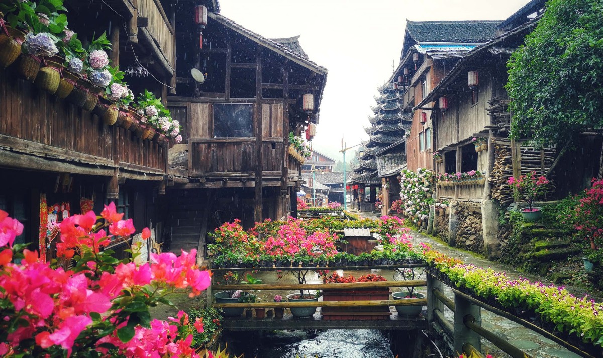 廻龙桥、牙上鼓楼、龙脉广场、1.6公里长的古驿道、龙门、长寿井、萨岁坛。网红打卡点有“景观石”、“花街古道”、侗族婚礼“囍文化”拍摄基地。