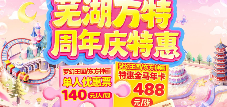 芜湖方特梦幻王国,采用高科技演绎特色主题,将动漫卡通、电影特技等国际时尚娱乐元素和中国传统文化符号精妙融合,创造充满幻想和创意的神奇天地。