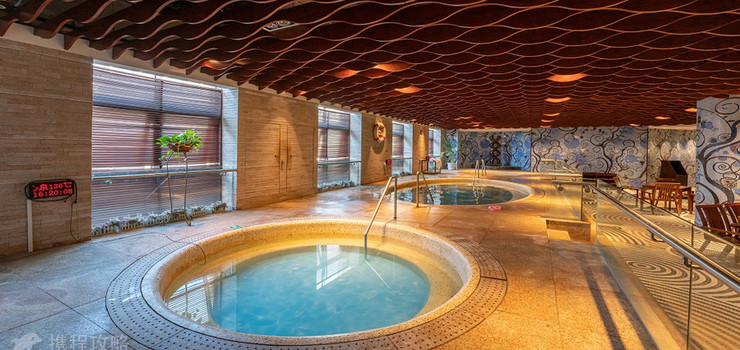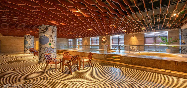 31个室内泡池,兼具娱乐与养生功能、以海洋文化为主题公园式海洋温泉,新增室内温泉水上乐园——68米彩虹滑梯,体验真正的速度与激情;冲天回旋,给你难以忘怀的冲浪体验;450平方米欢乐水寨,全家出动,或滑道间穿梭戏水,或等待从天而降的温泉浴。拥有30间地中海式、巴厘岛式,泰式、日式、中式VIP包房,让您悠然间领略异国风情。