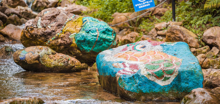 刘禹锡有诗“山不在高,有仙则名,水不在深,有龙则灵”; 南海湾森林生态园“仙”与“龙”兼备。茶山山脉北坡,气势雄伟、延绵不断的群山和茂林孕育了一条又一条山溪,各个小溪有二十七潭之多,其中又以绿水潭、水源潭、石门水帘潭、神龟溯涧潭、碧流泻玉潭、庆云大瀑布潭为奇、深、幽;