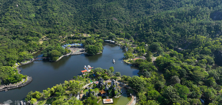 由我国园林名石——广东英石、江苏太湖石以1:1000倍比例按广东岭南派画家林风俗教授的水墨山水名画为蓝本放样砌成。