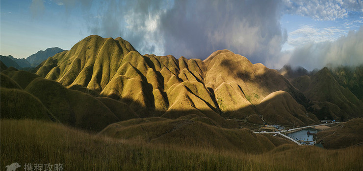 鸳鸯头草原四季风景各具魅力。春天,绵延的草丛中绽放着淡紫色、红色和白色的杜鹃,与漫山遍野的野花竞相争艳,引来众多的蜜蜂和彩蝶尽情飞舞。置身其中,能使人心花怒放。夏天,翠绿的山岗与蓝天白云融为一体,放眼望去,处处都是天然画卷,令人心旷神怡。秋天,此起彼伏的草甸开着银白色的草花,在微风吹拂下,摆动着修颀窈窕的身姿。冬天,泛红的草山与四周绿色的阔叶和针叶混交林带,形成了鲜明的色彩对比。如果降下一场瑞雪,还会使草原披上银装,其乐更无穷。