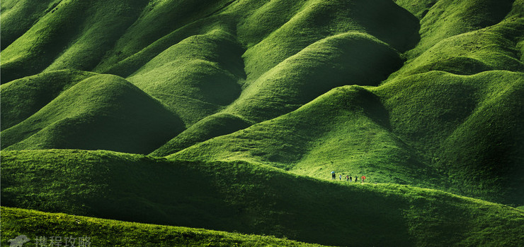 这是一片面积约5000亩,四周被阔叶和针叶混交林包围的草场。周边的山峰巍峨挺拔,充满阳刚之壮美。草场核心区的山岚远远望去,又如人工泥塑的微型盆景。草山低矮,绵延起伏;山脊走势,富有韵律,节奏中蕴含着温文典雅之美妙!
