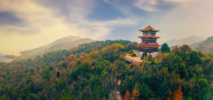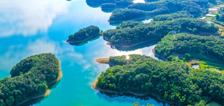 洈水风景区 春绿湖蓝,夏荫无暑,秋爽桂香,冬咏白雪