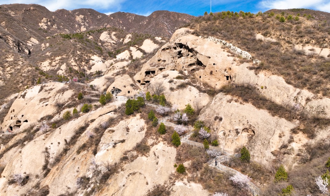 全部石窟居室分布在面向西南的东侧山体之上,西侧山体高于东侧,整个山寨避风朝阳。不能不赞叹古人利用地形地势等自然条件的奇绝。