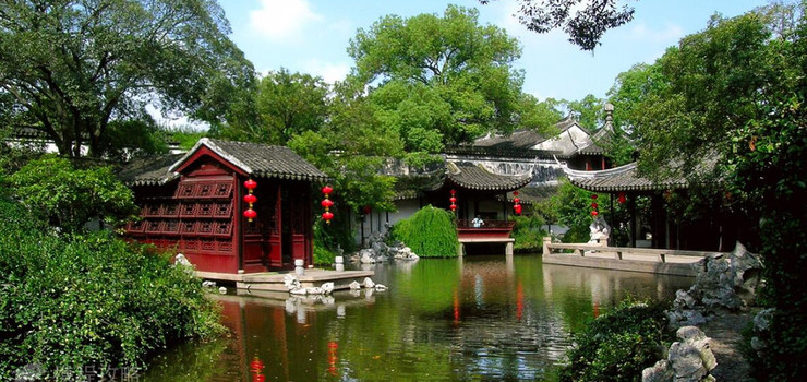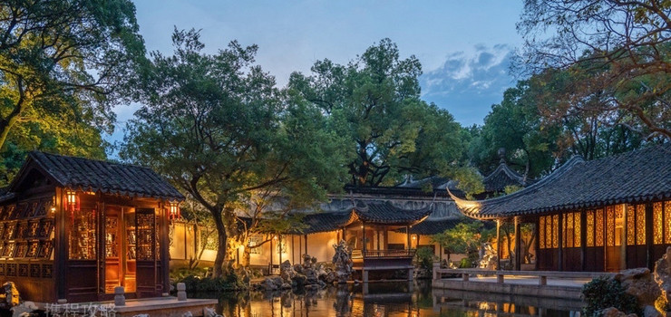 退思园,建于清光绪十一年至十三年(公元1885-1887年)。光绪十年(公元1884年),内阁学士周德润勋任兰生盘踞利津、营私肥已。光绪十一年(公元1885年)正月,解任候处分,旋因查所勋都不实,部议革职位。任兰生落职回乡,花十万两银子建造宅园,取名“退思”。其弟任艾生哭兄诗有“题取退思期补过,平泉草木漫同看”之句,可见园名取《左传》“进思尽忠,退思补过”之意。退思园的设计者袁龙,字东篱,诗文书画皆通。他根据江南水乡特点,因地制宜,精巧构思,历时两年建成此园。园占地仅九亩八分,既简朴无华,又素静淡雅,具晚清江南园林建筑风格。退思园布局独特,亭、台、楼、阁、廊、坊、桥、榭、厅、堂、房、轩一应俱全,并以池为中心,诸建筑如浮水上。格局紧凑自然,结合植物配置,点缀四时景色,给人以清澈、幽静、明朗之感。退思园因地形所限,更因园主不愿露富,建筑格局突破常规,改纵向为横向,自西向东,西为宅,中为庭,东为园。宅分外宅、内宅,外宅有轿厅、花厅、正厅三进。轿厅、花厅为一般接客停轿所用。遇婚嫁喜事、祭祖典礼或贵宾来临之时,则开正厅,以示隆重。正厅两侧原有“钦赐内阁学士”、“凤颍六