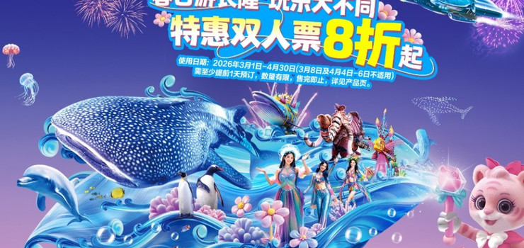 游遍8大主题区,到访珍稀动物展馆,挑战动感游乐设施,欣赏3大剧场表演!让您一次与珍稀的鲸鲨、白鲸、北极熊和其它可爱动物见面!更可欣赏到花车巡游、横琴海汇演等大型户外节目,旅程中不容错过环球滋味美食和购物乐趣,让您尽享海洋主题的精彩体验!