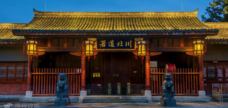川北道署即道台衙门,是明、清两代省政府的派出机构,清乾隆年间成为管理府州县的一级政权机关。现存的阆中道台衙门遗址、遗迹肇建于清雍正八年(1730年),建筑仅存仪门。大门、戒石坊、大堂、二堂、三堂均通过实物、雕塑等再现清代场景,各堂东、西厢房按原功能进行文化内涵布展,有展室二十余间,各类展件千余件;另有《道台审案》等古装实景演出,为全国罕有。